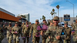 Santa Claus and Mrs. Claus impersonators pose for a photo, Dec. 8, 2023, at Luke Air Force Base, Arizona. Holiday Magic is an annual event with food, games, and holiday cheer for families at Luke AFB. Events like holiday magic contribute to the 56th Fighter Wing’s line of effort to advance quality