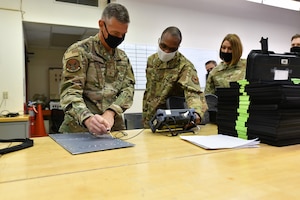 Senior Airman Jaime Villagomez (bottom left) and Airman 1st Class Manolo Hernandez (bottom right), 56th Civil Engineer Squadron water and fuels system maintenance technicians, maintain a fire hydrant system while Jerome Stanton, 56th CES WFSM technician, observes, Nov. 2, 2020, at Luke Air Force