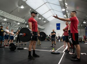 Lt. Col. Mark Whisler, 425th Fighter Squadron commander, addresses his predecessor during his acceptance speech after assuming command March 16, 2018, at Luke Air Force Base, Ariz. Whisler thanked Lt. Col. Jason Cooper for his work in leading and maintaining the squadron over the past two years.